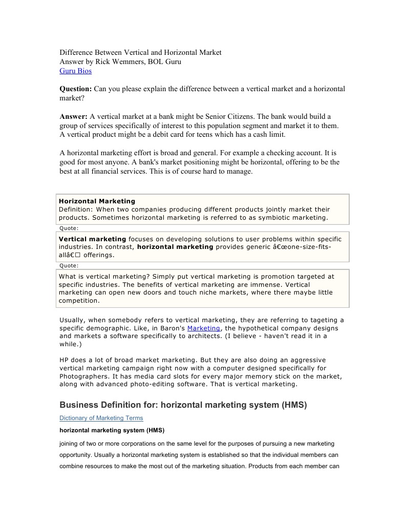 These relationships are a popular form of vertical marketing. Besides the definition youll find out 3 types of vertical marketing systems as well as 5 steps to develop an effective vertical marketing strategy for your business. Businesses that operate in a horizontal marketing system seek to appeal to a wide demographic thats not really niche.