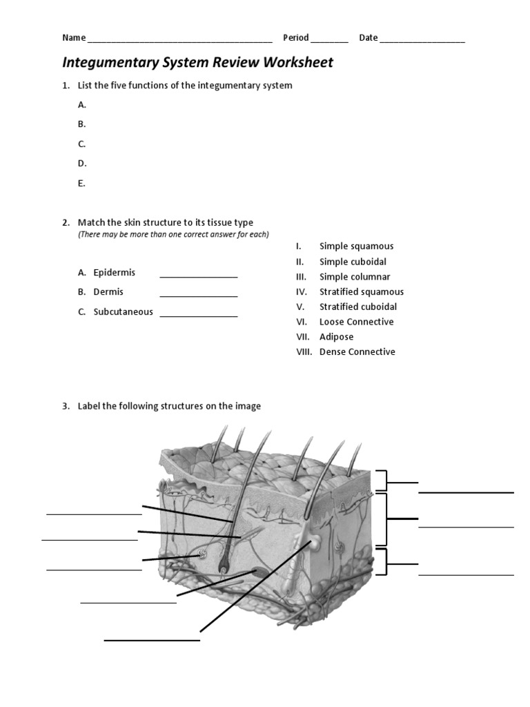 Components of the Integumentary System Figure 5-1. Quiz yourself online or through our mobile app. Integumentary System Labeling Worksheet Answers.