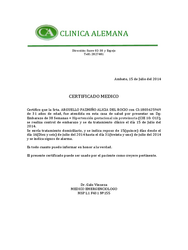 Certificado Medico De Embarazo