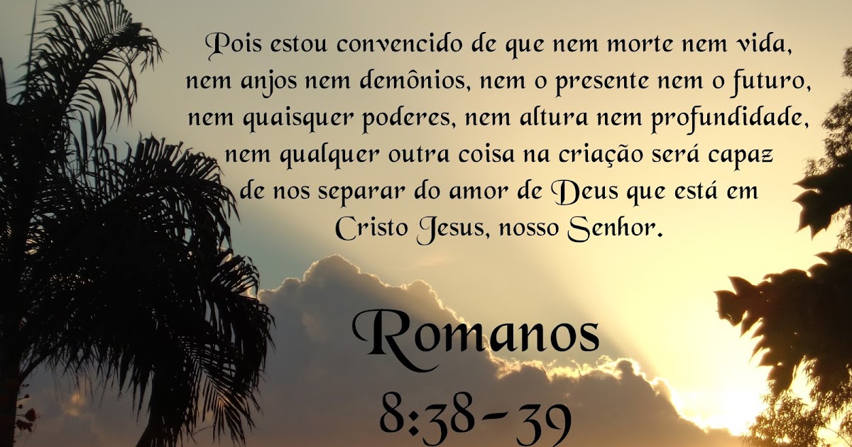 Cristo morreu em nosso favor quando ainda. Pois estou convencido de que nem morte nem vida nem anjos nem demônios nem o presente nem o futuro nem quaisquer poderes nem altura nem profundidade nem qualquer outra coisa na criação será capaz de nos separar do amor de Deus que está em Cristo Jesus nosso Senhor. 15 de maio de 2021 Por NVI. É Deus quem os justifica. 28 Sabemos que Deus age em todas as coisas para o bem daqueles que o amam dos que foram chamados de acordo com o seu propósito. Todos os termos aqui devem ser tomados em seu sentido mais geral e não precisam de uma. Read full chapter Romanos 839 in all Spanish translations. Pense em todos os prazeres em todas as solicitações em todas as atividades como você vai pensar neles então. Nem altura nem profundeza nem qualquer outra criatura poderá nos separar do amor de Deus que está em Cristo Jesus nosso Senhor.